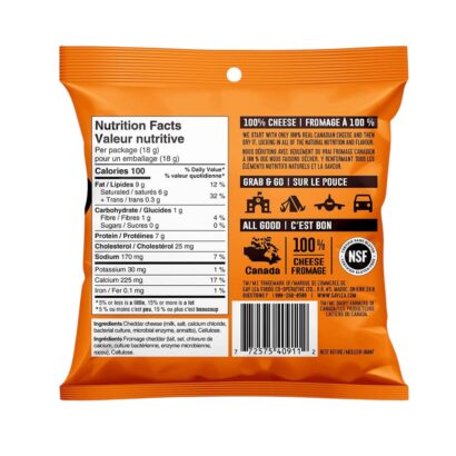 Ivanhoe Nothing But Cheese is a crunchy cheese snack made from 100% real Canadian cheese! Using a patented process, bite-size pieces of award-winning Ivanhoe cheese are turned into a light and puffy snack that doesn’t require refrigeration. They are high in protein, gluten-free, low in carbs and low in calories. Perfect for snacking on-the-go or as a topper for soups and salads. Enjoy the the delicious taste and nutritious benefits of cheese in this crunchy, shelf-stable format!