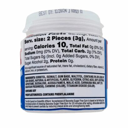 Everyone’s favourite bubble gum is now sugar-free! All the great flavour of Bazooka Bubble Gum with none of the sugar! And, don’t you worry. The label on the lid is packed with classic Bazooka Joe comics.