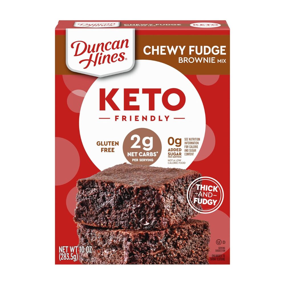 - Contains one 10-ounce box of Duncan Hines Keto Friendly Chewy Fudge Brownie Mix