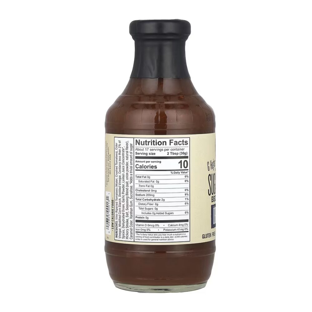 Taste real BBQ sauce with G Hughes Sugar-Free Original BBQ Sauce! You haven’t tasted BBQ sauce until you’ve tasted G Hughes undeniably tasty BBQ sauce! Made without any gluten, this keto-friendly sauce has the perfect blend of herbs and spices to leave you licking your fingers for more. Perfect for cookouts and summer BBQs, G Hughes original BBQ sauce is all you need to become your neighborhood’s pitmaster.