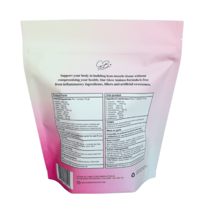 Medicinal Ingredients: Per 10g Scoop L-Leucine … 2500 mg L-Isoleucine … 1250 mg L-Valine … 1250 mg L-Lysine … 2000 mg L-Phenylalanine … 300 mg L-Threonine … 300 mg L-Histidine … 200 mg L-Tryptophan … 200 mg L-Methionine … 100 mg Non-Medicinal Ingredients: Citric acid, Malic acid, Natural & Artificial flavour, Stevia leaf extract.