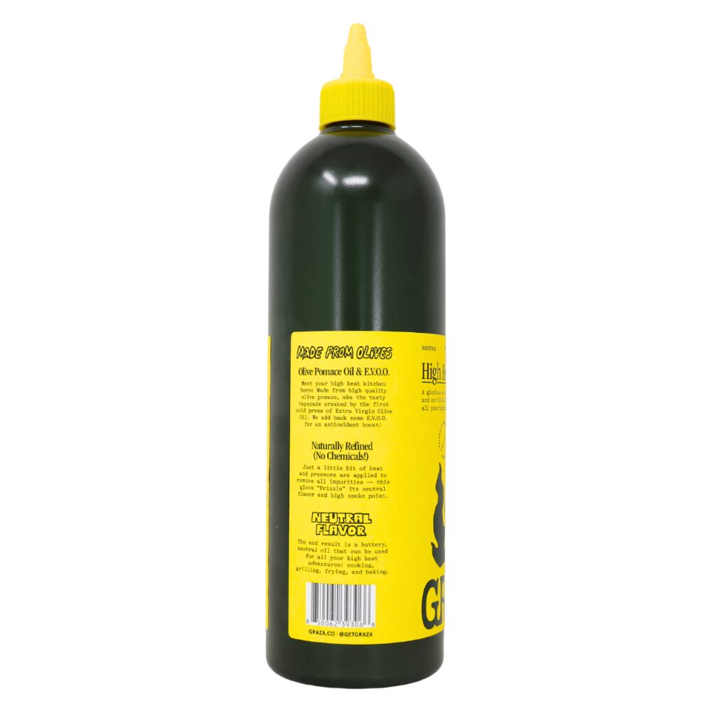 Big flavour. High heat. This is the olive oil based cooking oil that keeps its cool when the pan gets hot. Graza Frizzle is made for high-heat, everyday cooking.