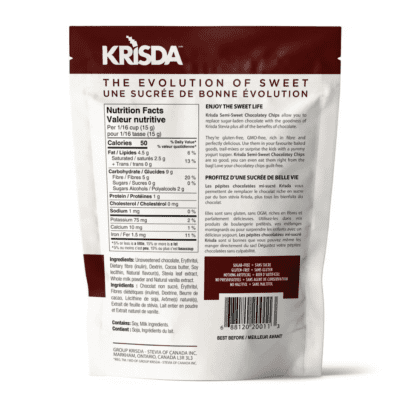 Krisda Semi-Sweet Chocolatey Chips allow you to replace sugar-laden chocolate with the goodness of Krisda Stevia plus all of the benefits of chocolate.