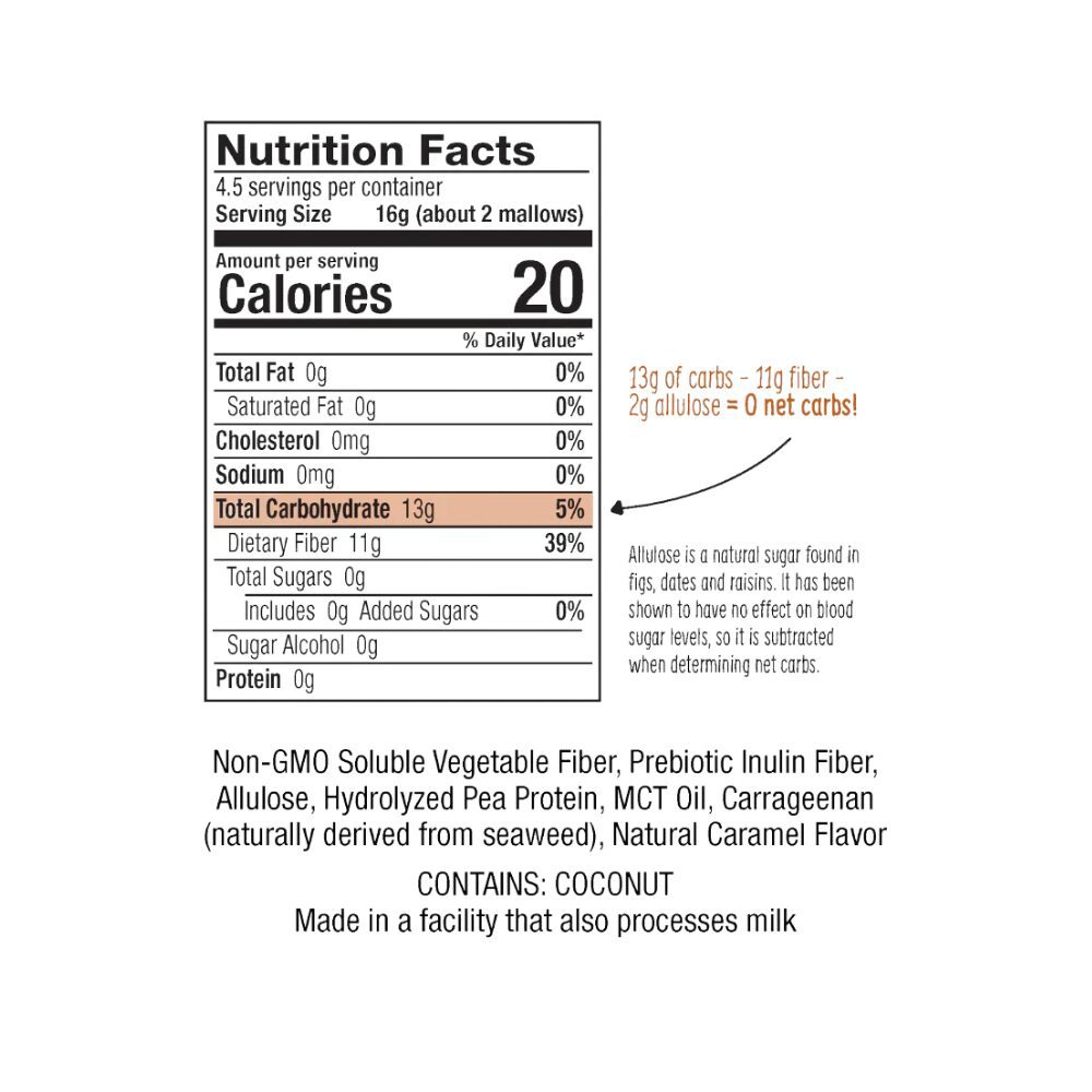 These snack worthy vegan marshmallows are packed with nutrition! Enjoy these sugar free vegan mallows in your cup of coffee, hot chocolate, as a snack, and in baking. Our vegan mallows have a firmer texture than our other mallows, and the caramel color of the allulose appears over time. It’s chemistry and completely natural. They are deliciously satisfying.