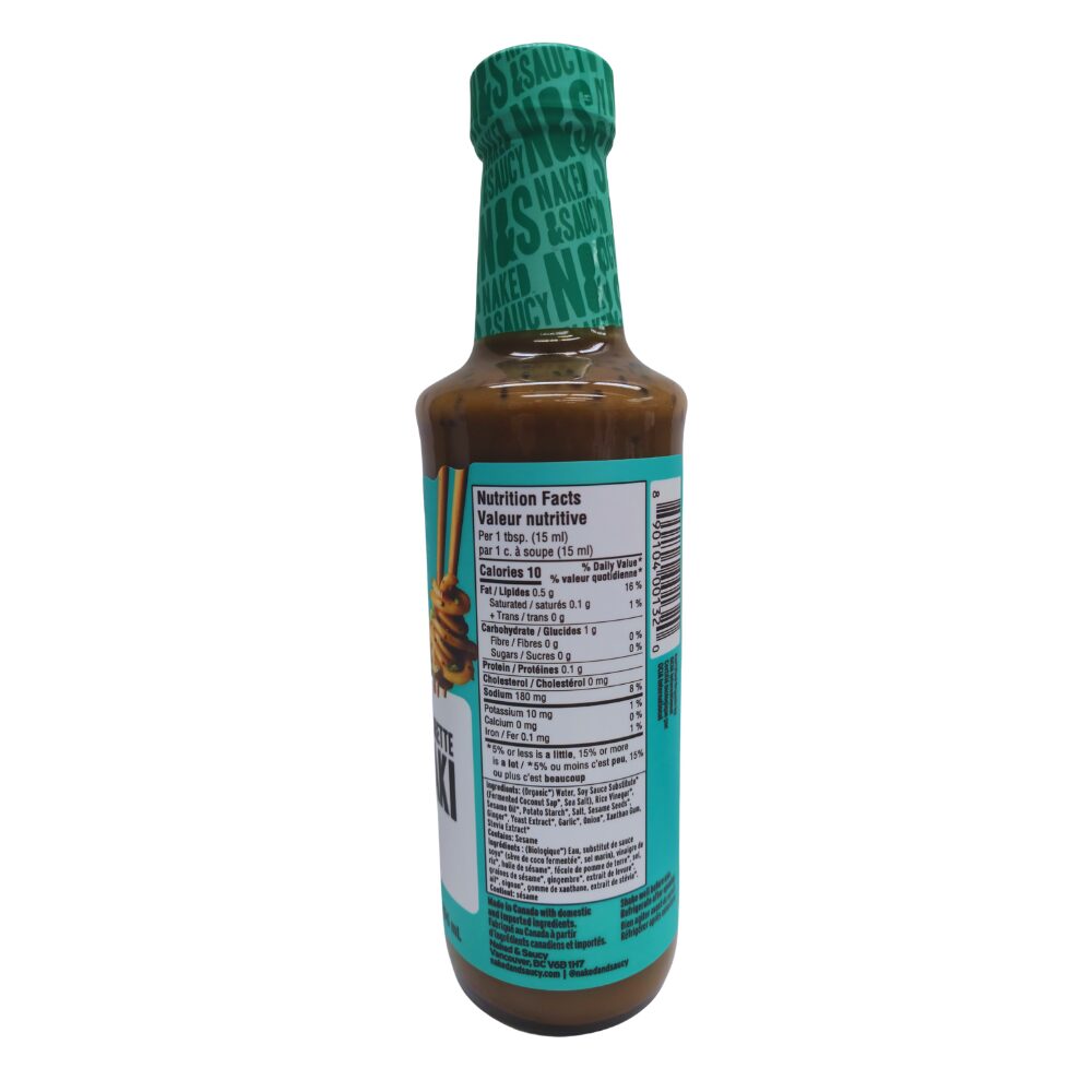 Ingredients: Water, Coconut Aminos, Rice Vinegar, Toasted Sesame Oil, Potato Starch, Salt, Sesame Seeds, Ginger, Yeast Extract, Garlic, Onion, Xanthan Gum, Stevia Extract.