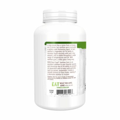 NOW Real Food® Xanthan Gum is an excellent addition to your favorite sauces and dressings due to its ability to prevent oil separation and to keep solid particles, such as spices, suspended. It lends a smooth texture to many foods, making it a desirable addition to recipes.