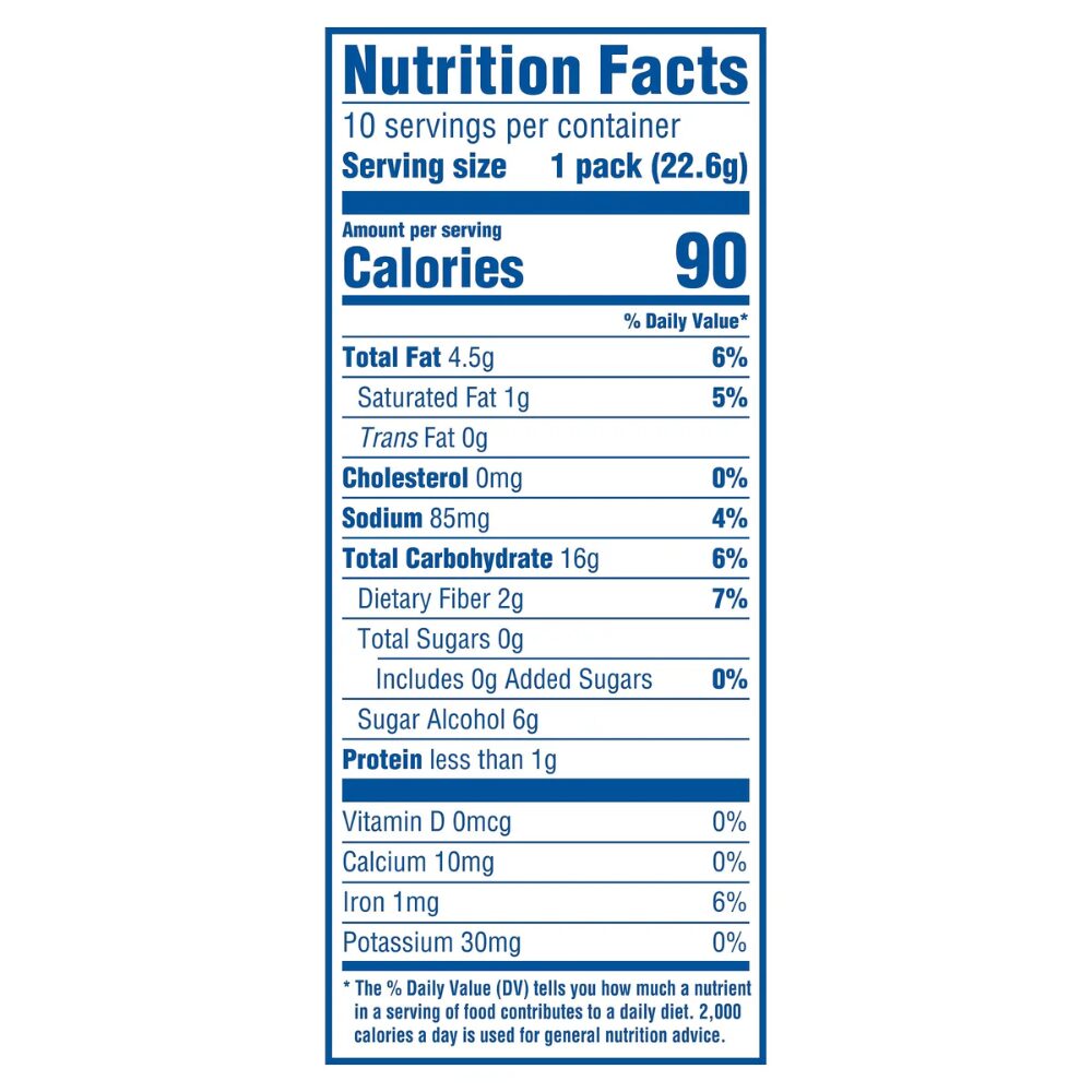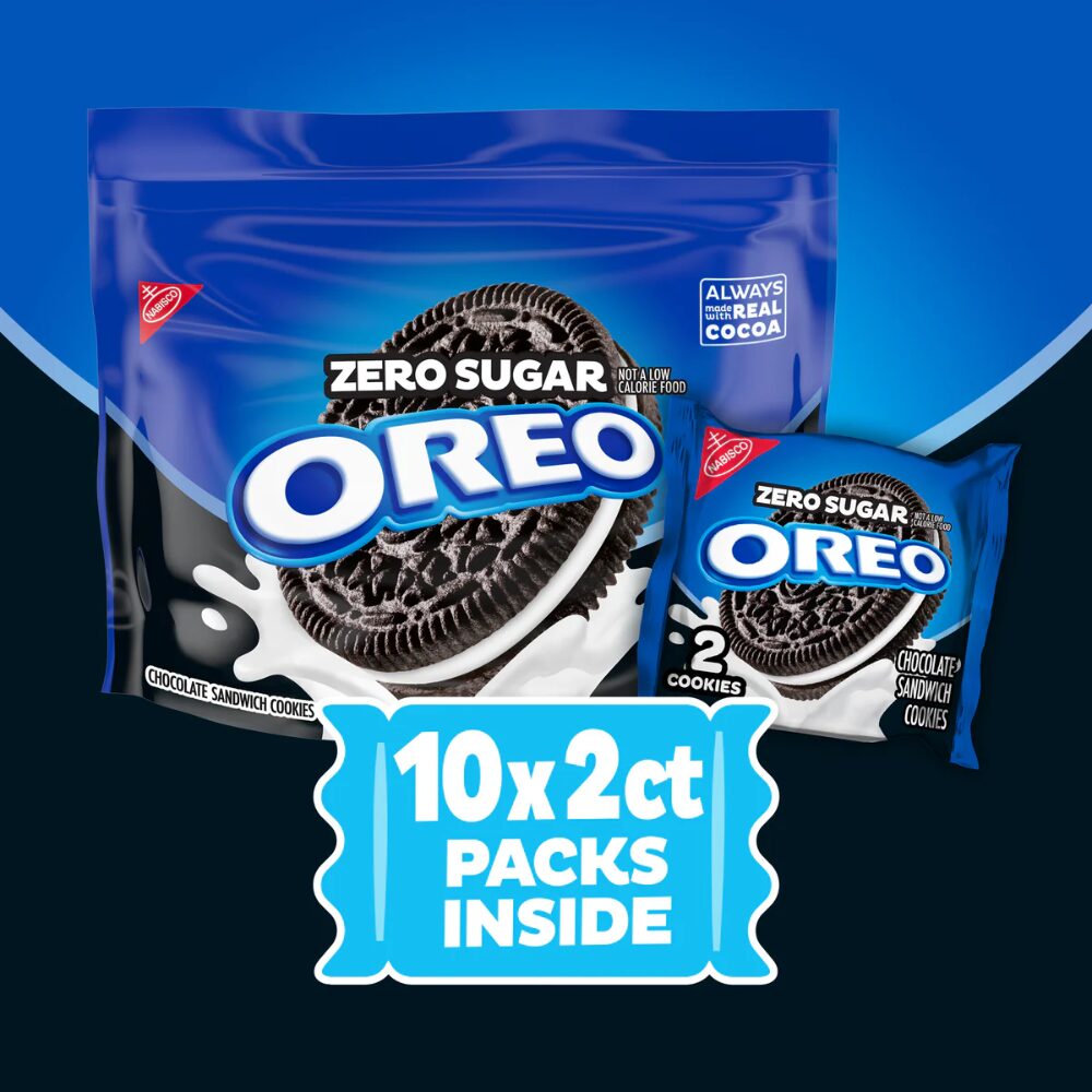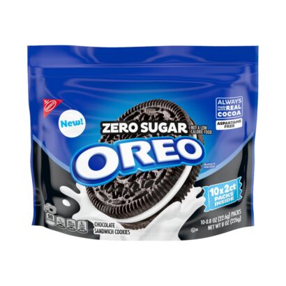 Enjoy the classic OREO cookie taste, minus the sugar, with OREO Zero Sugar* Chocolate Sandwich Cookies. Delicious with or without milk, these sugar-free* OREO chocolate cookies sandwich a layer of OREO creme filling between two chocolate wafers that are always made with Real Cocoa for supremely dunkable, sweet snacks. Certified kosher and aspartame free, the OREO cookie packs are great party favors, holiday gifts, and game prizes. These snack cookies also make wonderful office snacks and after-lunch snacks, and they’re a fantastic addition to care packages. With these individually wrapped, two-cookie packs, you’ll be set for any snacking occasion.