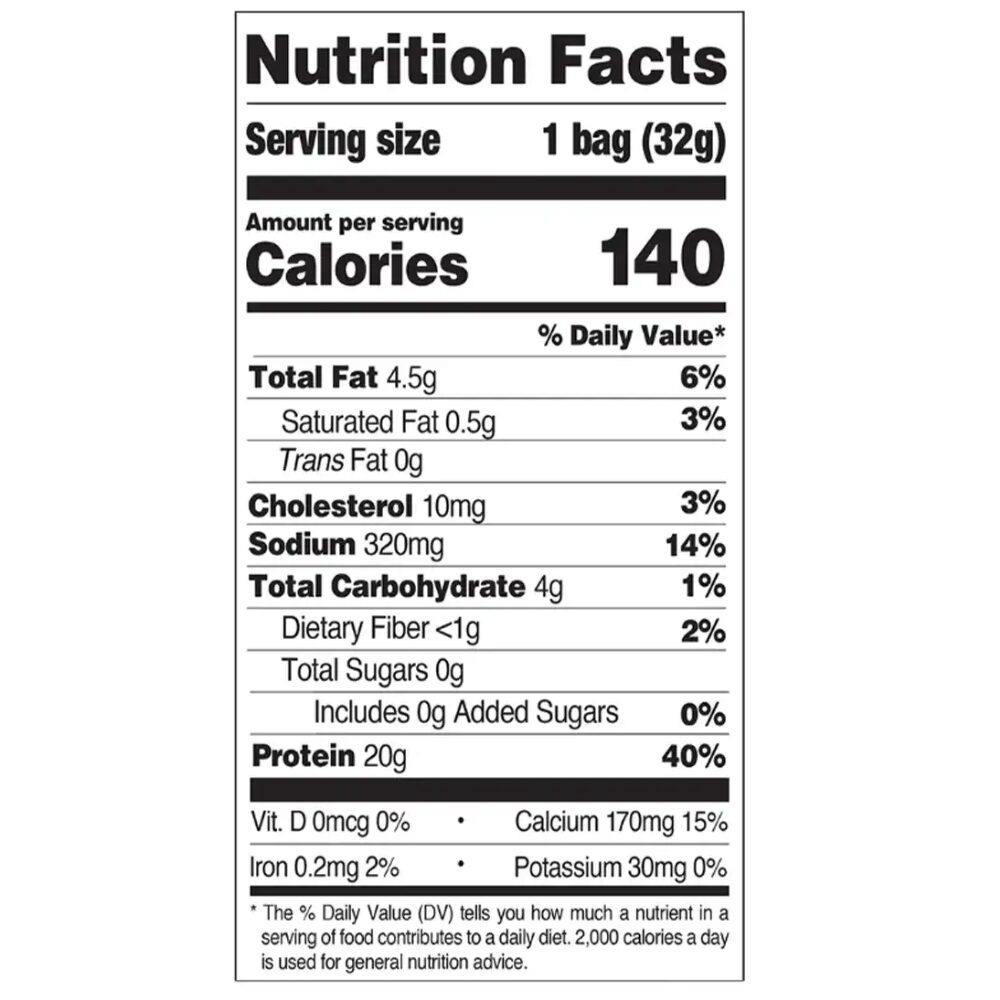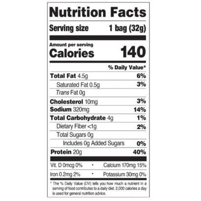 Ingredients: Protein Blend (Milk Protein Isolate, Whey Protein Isolate), High Oleic Sunflower Oil, Calcium Caseinate, Corn Starch, Natural Flavors, Psyllium Husk, Salt. Contains less than 2% of the following: Onion Powder, Paprika, Spice, Chia Seed, Vinegar Powder, Lime Juice Powder, Sugar, Yeast, Citric Acid, Turmeric Oleoresin (Color), Paprika Extract (Color) Sunflower Lecithin, Calcium Carbonate, Yeast Extract, Stevia Sweetener.