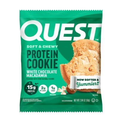 Cheat on cookies with cookies. Quest White Chocolate Macadamia Flavored Cookies blend the rich, creamy taste of white chocolate flavors with the crunchy delight of macadamia nuts. And with 15g of protein, 1g of sugar, and 2g of net carbs per serving – they’re made to support your fitness goals as well as your taste buds. Finally a deliciously soft & chewy white chocolate macadamia flavored cookie from Quest.