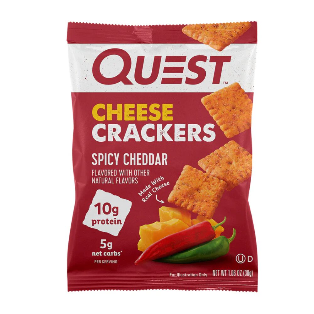- Big Taste. Big Nutrition. Quest Cheese Crackers provide all the crunch and satisfying taste of a regular cheese cracker, but theirs have 10g of protein and 5g of net carbs per serving.