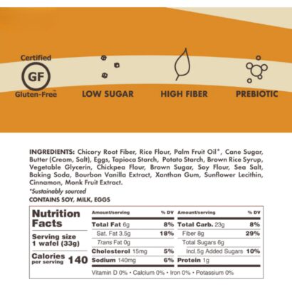 - Gluten-Free & Baked: Healthy Snack with Only 6g of Sugar – Enjoy a delicious baked stroopwafel with 6g sugar, 0g trans fat, 140 calories, and 7g fiber per 33g serving.