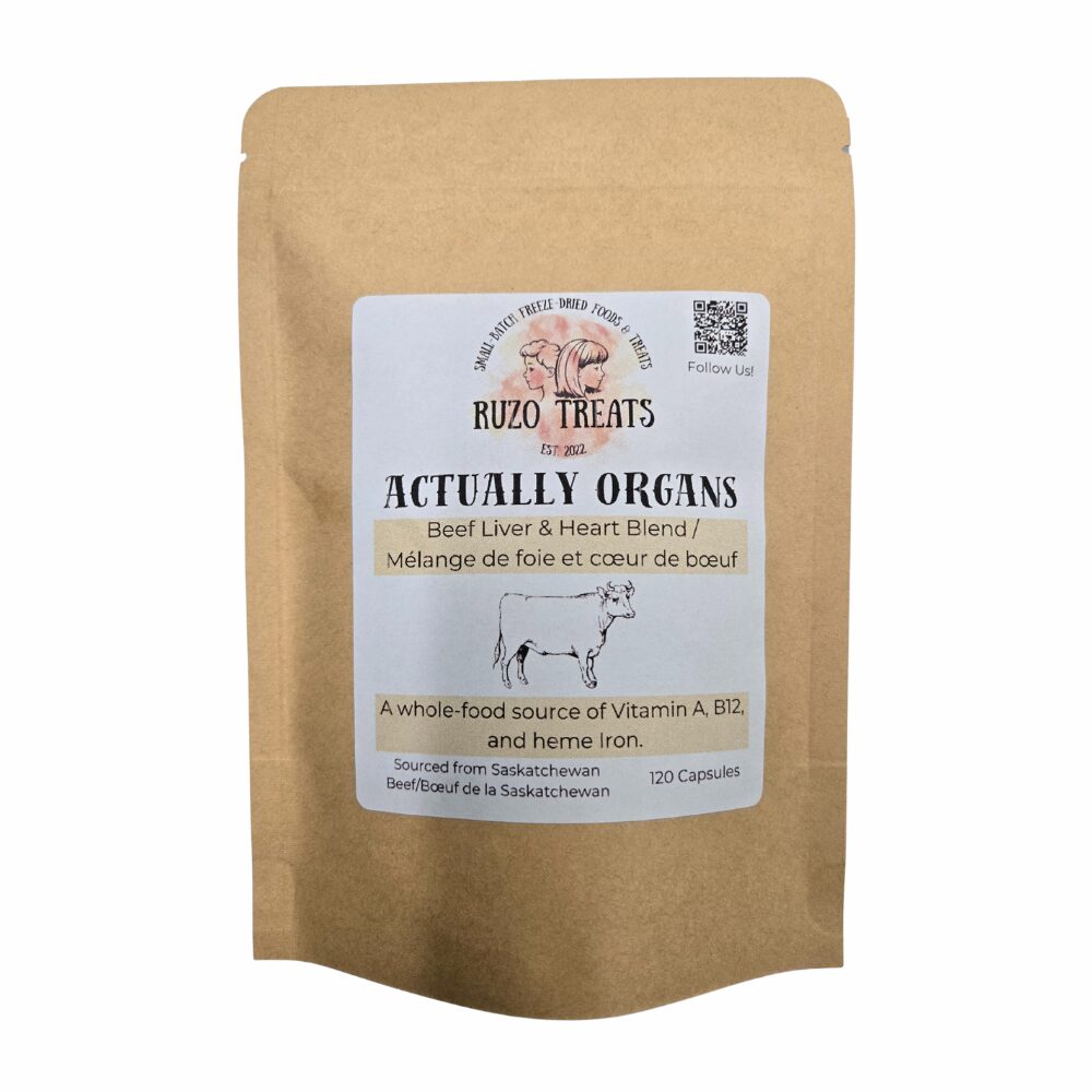 🍁 RuZo Treats Actually Organs Beef Liver & Heart Blend, 120 Cap