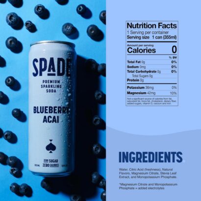 Why Choose Spade? Zero Sugar, Zero Guilt – naturally sweetened with no artificial sweeteners, no aspartame, and no high-fructose corn syrup. Made with All-Natural Ingredients with clean a label, non-GMO, and free from artificial colors or preservatives. Spade has electrolyte enhanced hydration, it is thoughtfully infused with potassium and magnesium to support balance and refreshment.