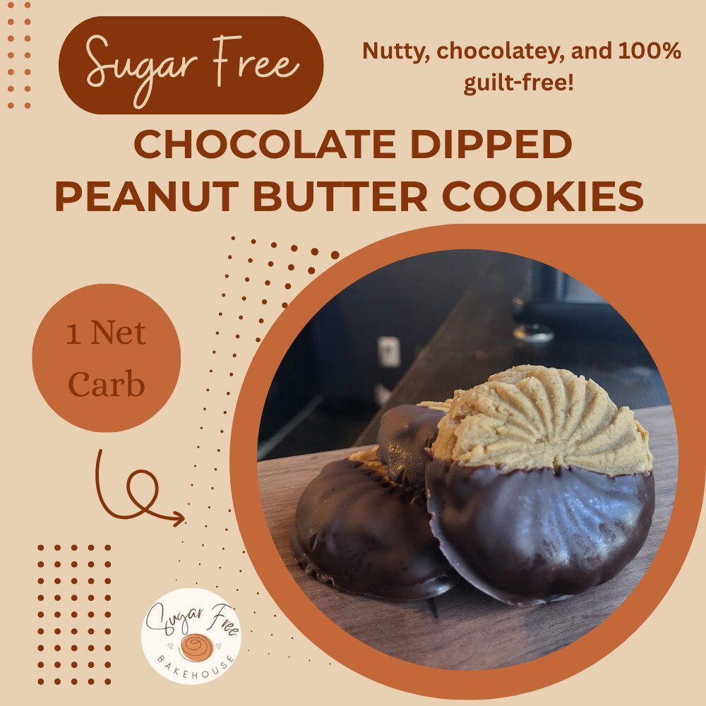Our Sugar Free Chocolate Dipped Peanut Butter Cookies are soft, buttery, and full of deep peanut butter flavor, finished with a smooth chocolate dipped coating for the perfect balance of sweet and dangerously delicious without feeling guilty. Each bite is rich, satisfying, and thoughtfully made with clean ingredients.