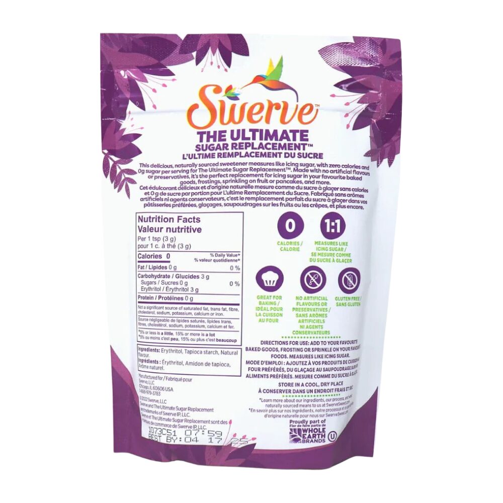 With Confectioners Style Swerve, even cupcake frosting can be guilt-free! Swerve is a great tasting, natural sweetener that measures cup-for-cup just like sugar! Made from a unique combination of ingredients derived from fruits and vegetables, Swerve contains no artificial ingredients, preservatives or flavors. It is the perfect replacement for confectioners sugar in your favorite baked goods, frostings, sprinkling on fruit or pancakes and more!
