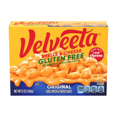 Our 12-ounce mac and cheese dinner includes gluten-free macaroni pasta and original flavor cheese sauce to make a tasty gluten free snack, side or addition to a meal. Make macaroni and cheese a part of your gluten free meal kids love. For instant cheesy gratification, our recipe hits the mark, with iconic, velvety meltability and tender pasta shells that grip the drip like no other. Made with real cheese, Velveeta’s supremely creamy texture and rich, savory taste satisfy your cravings any day of the week. Whether you’re looking for gluten free snacks for adults or kids, gluten free sides or a gluten free lunch, Velveeta mac and cheese is a great choice. Customize our cheesy brown rice and corn pasta with veggies, meat, toppings or seasonings. Sometimes unnecessary is necessary, so kick back, relax and embrace the flavor. Luxuriously convenient, preparing Velveeta Shells and Cheese is a breeze. Simply boil the shell pasta, drain, combine with the cheese sauce and enjoy, unapologetically. Keep your pantry stocked with our gluten free meals and enjoy cheesy goodness anytime. That’s La Dolce Velveeta!