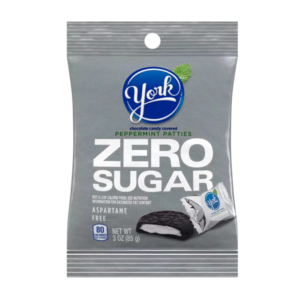 YORK Zero Sugar Peppermint Patties are cool and refreshingly sweet without the sugar. Get the perfect mint and dark chocolate candy flavor with each individually wrapped bite.