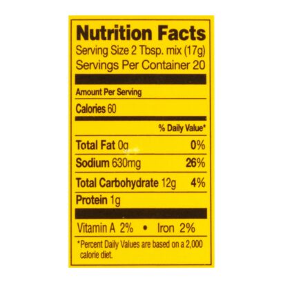 Ingredients: Enriched Yellow Corn Meal (Corn Meal, Iron, Niacin, Thiamine Mononitrate, Riboflavin, Folic Acid), Salt, Spices (Including Red Pepper), Natural Flavor, Monosodium Glutamate (Flavor Enhancer), Garlic, Onion and Lemon Juice Concentrate.
